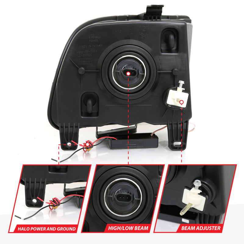 Crystal Headlight Set, w/Halo, Clear Lens, Black Housing, Pair, CCFL, For Use w/Non HID Models Only, . Guaranteed To Improve Your Vehicles Appearance. Rigorously Tested For Fit And Function. Simple Plug And Play. No Modifications Required. Easy Installation Using Common Hand Tools. Uses Stock Mounting Locations And Hardware. D.O.T. Compliant To S.A.E. Standards. Sold As A Pair. Does Not Fit Models With Factory HID Bulbs.