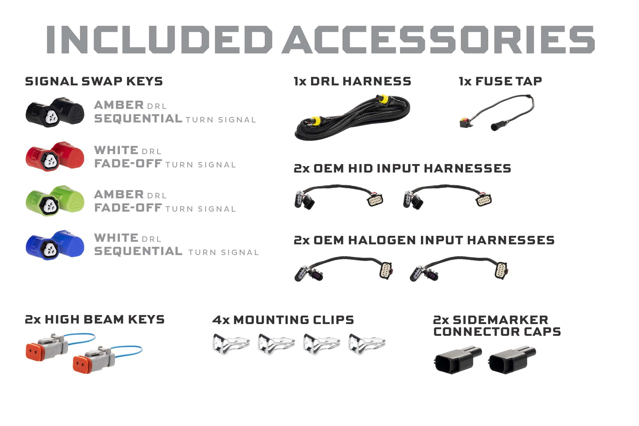 Easy to Personalize: The signal swap system allows users to personalize how the daytime running lights and turn signals operate according to personal preference, all through a simple plug n play key on the back of each headlight. The daytime running light can be configured to run full-time in either white or amber with no compromise in intensity either way. The turn signals can operate sequentially from side to side, or in a more traditional on-off mode with an elegant fade-off effect.