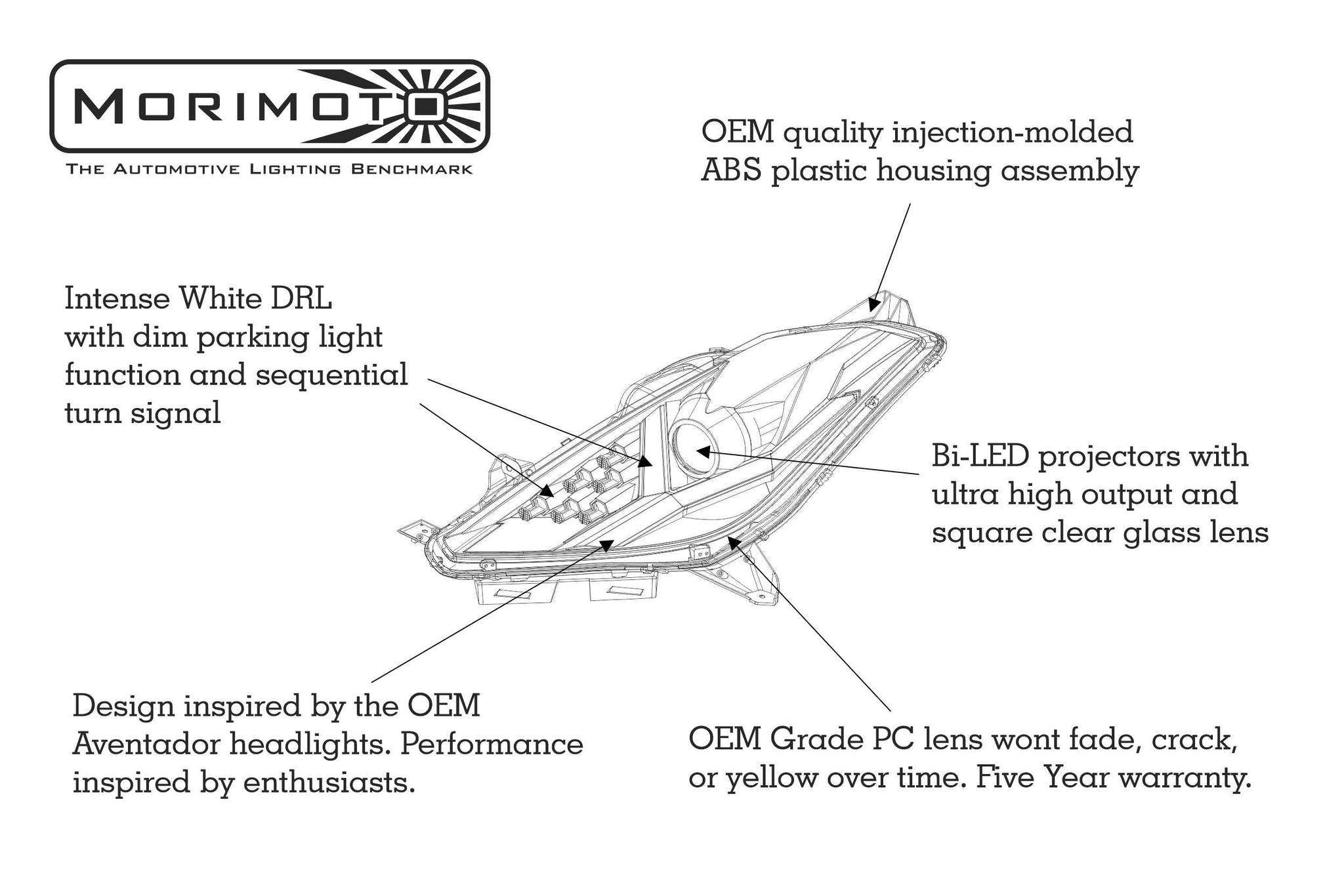 Well-Built: Their UV-coated polycarbonate lens will resist the test of time, ensuring your Vette's new headlights will look good as new for many years to come. The PPS plastic housing is light-weight and much stronger than comparable alternatives. The die-cast aluminum heat-sinks inside the housings provide more than an adequate amount of cooling for the OEM grade Osram LED chips that produce the light. These complete headlights may be new to the market, but Morimoto's XB LED fog lights have proven themselves perfect after 5+ years out now, which is confidence inspiring.