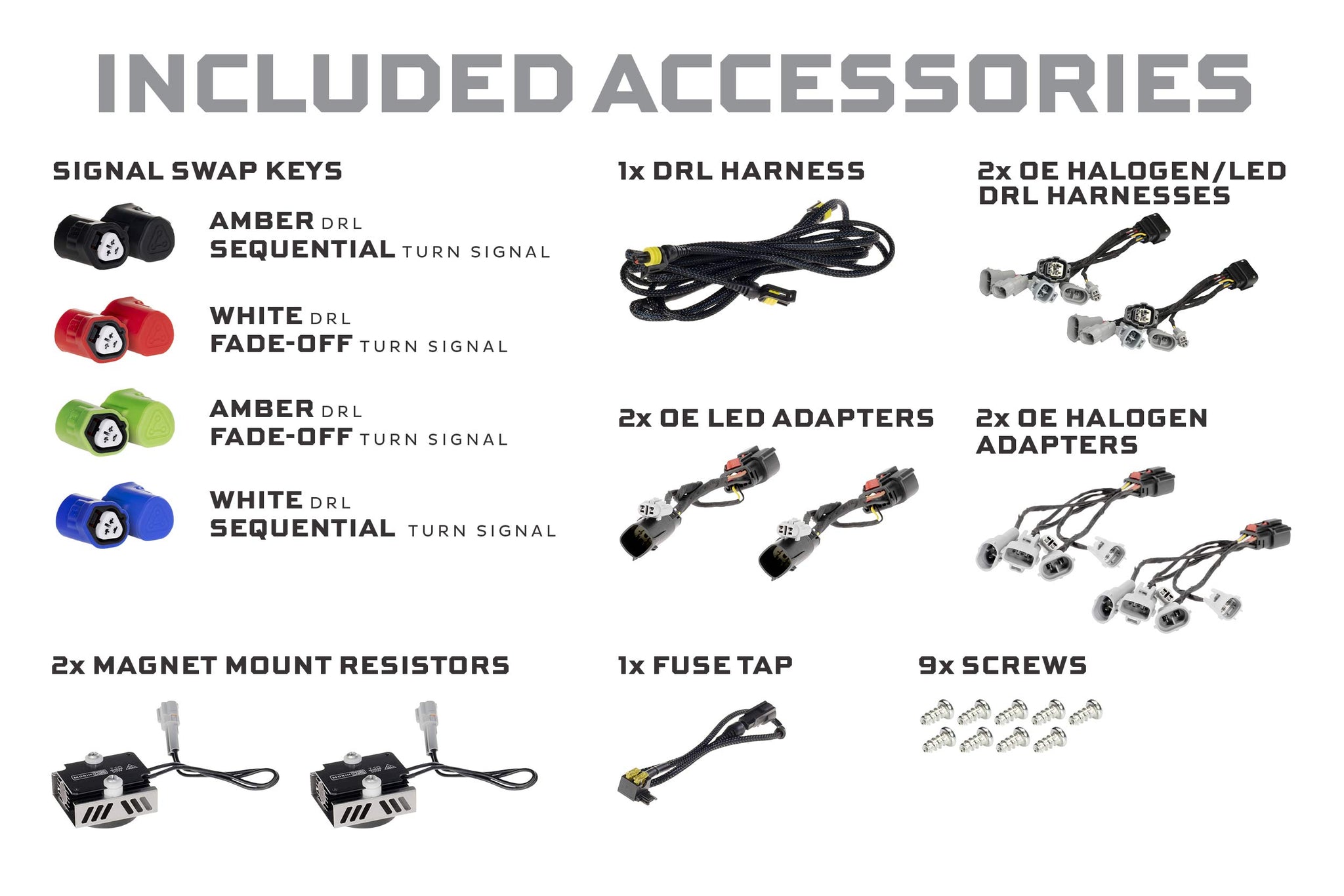 Easy to Personalize: The signal swap system allows users to personalize how the daytime running lights and turn signals operate according to personal preference, all through a simple plug n play key on the back of each headlight. The daytime running light can be configured to run full-time in either white or amber with no compromise in intensity either way. The turn signals can operate sequentially from side to side, or in a more traditional on-off mode with an elegant fade-off effect.