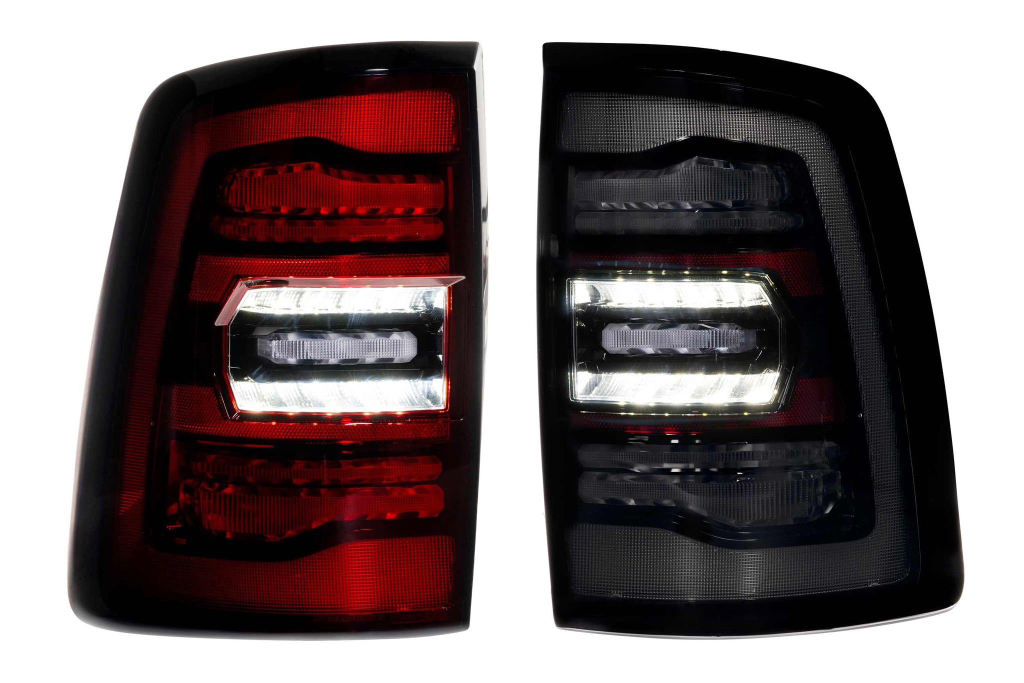 Style: Inspired by the design of the most modern OEM LED tail lights from the current generation Ram truck, these look right at-home on the rear end of the 19+ HD. Two clusters of parallel 3D Optics are illuminated from the rear with integrated TIR optics and serve as the brake light and turn signal. The parking light optic around the outer edge of the lights mirrors the OEM LED setup too and is equally impressive in the intensity department day or night. Pair that with the surrounding muscular trim, optional smoked or red outer lens, and we've easily got what is the best-looking set of aftermarket tail lights on the road for the new HD Ram trucks!